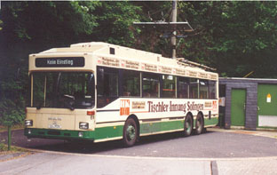 Obus 44 fährt bei schönstem Sonnenschein in Richtung Solingen-Widdert. |