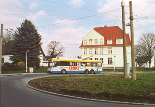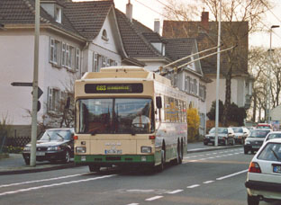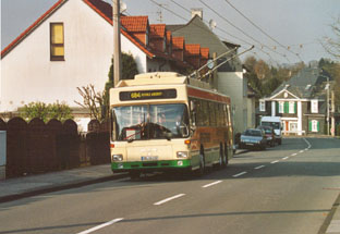 | Schleife Widdert mit Obus 46. | Wagen 51 hat die Krahenhöhe erreicht. |